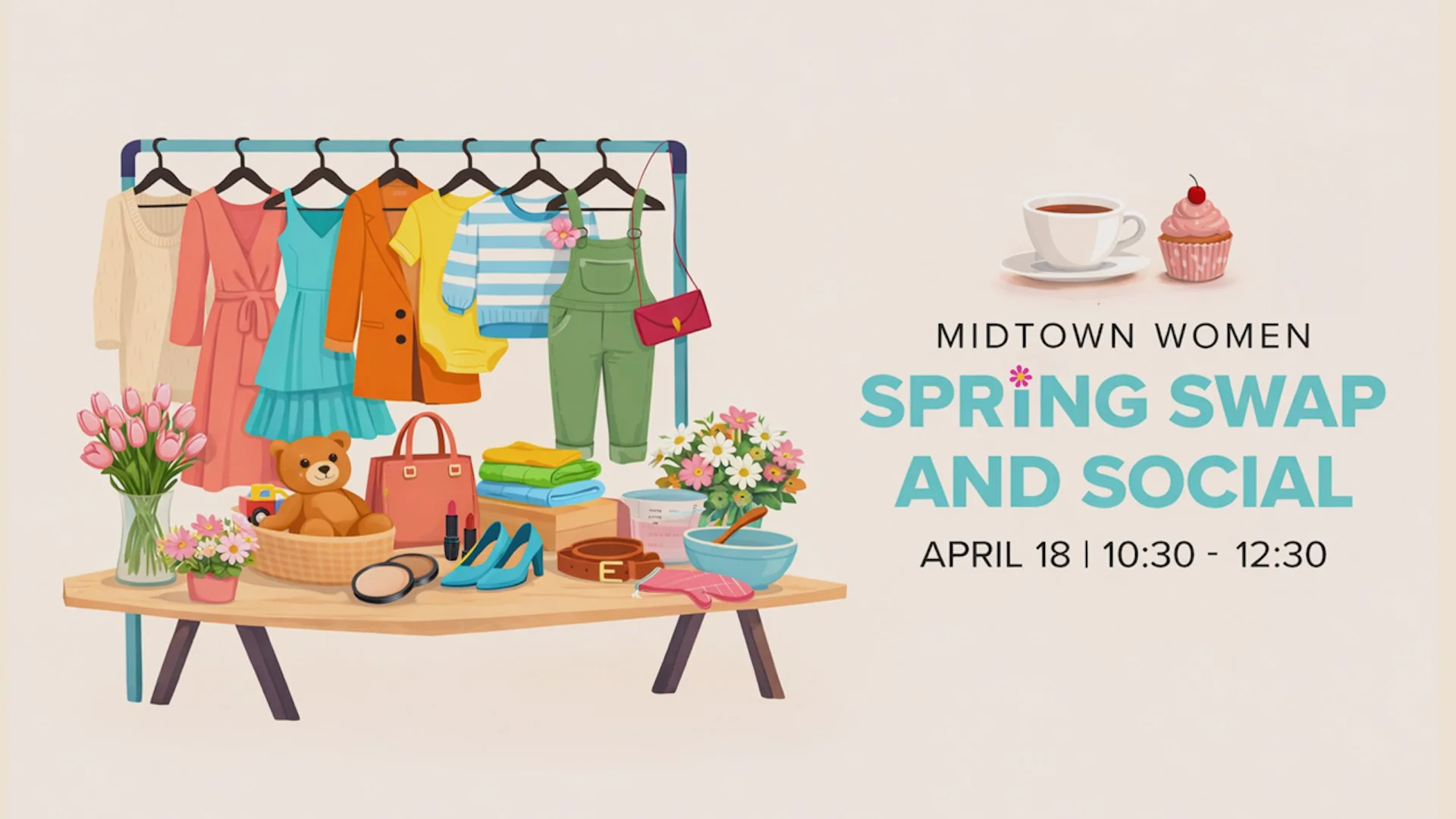 Join us for a fun morning to connect, share, and refresh our closets and homes for spring—while sipping tea and enjoying some delicious baking.